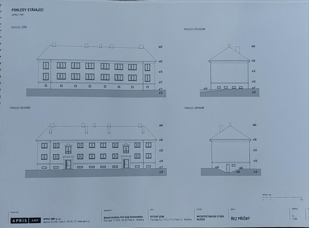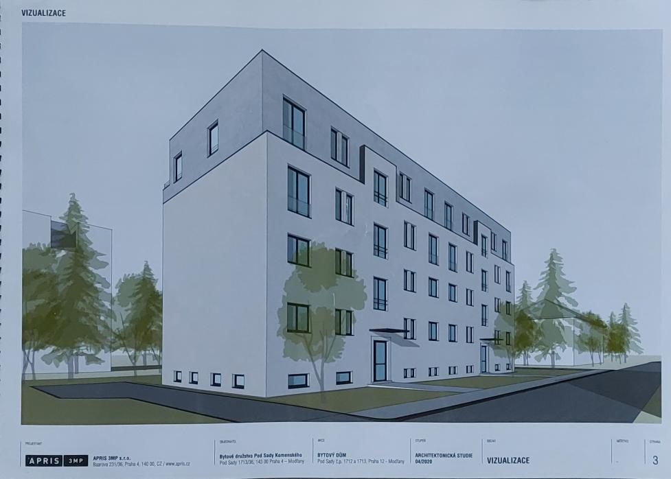 Byt bude v posledním 3. patře (4.NP) cihlového zatepleného domu v Modřanech, v klidné, slepé ulici Pod Sady.
