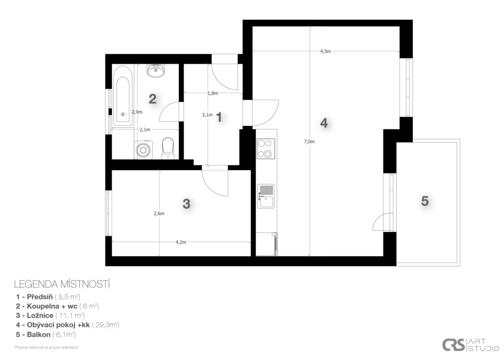 Dispozici bytu lze případně upravit dle vlastních požadavků. Cena bytu zahrnuje kompletní dokončení kromě kuchyňské linky, vše ve standardní kvalitě. Protože jde o výstavbu, jsou možné změny na jakoukoliv kvalitu dle vašeho výběru.